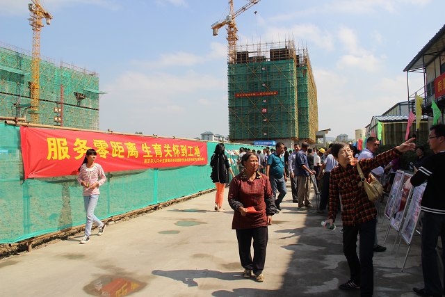 服務(wù)零距離 生育關(guān)懷到工地 為切實關(guān)心施工一線工人,體現(xiàn)社會溫暖,10月11日,南京市人口計生委、南京市住建委計生協(xié)、南京市秣陵街道辦事處走進南京建工集團六公司東南大學(xué)土木交通教學(xué)科研樓項目部開展“服務(wù)零距離,生育關(guān)懷到工地”服務(wù)活動,吸引了項目部百余名建筑工人的熱情參與。