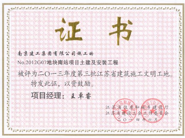南京建工集團(tuán)六公司萬科九都薈工程喜獲“省級(jí)文明工地”