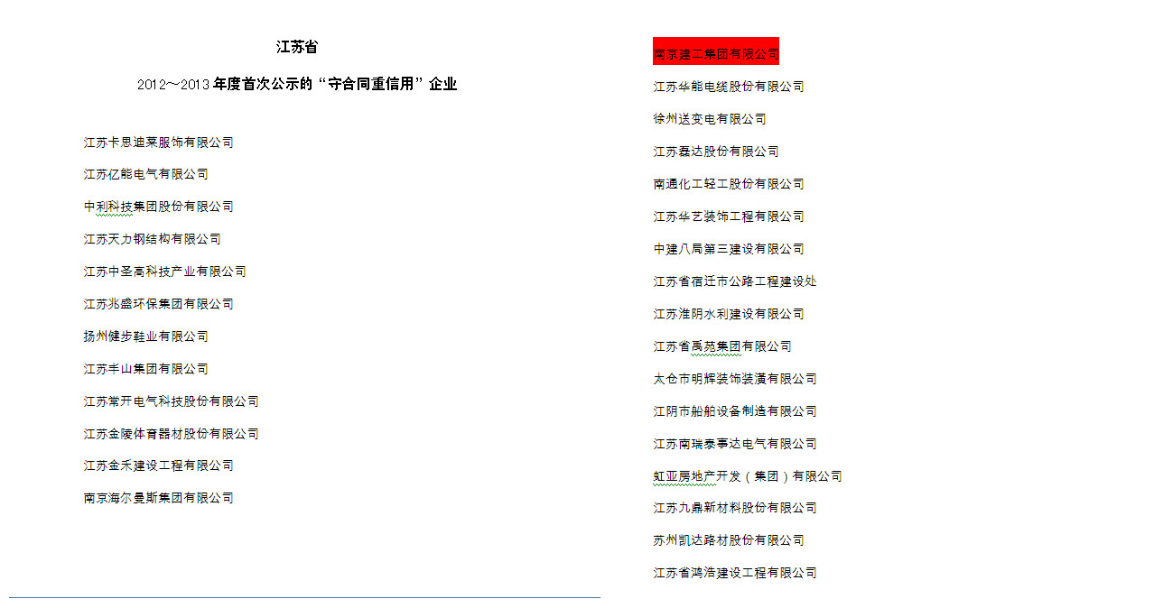 ? 南京建工集團(tuán)首次獲國家級“守合同重信用”企業(yè)