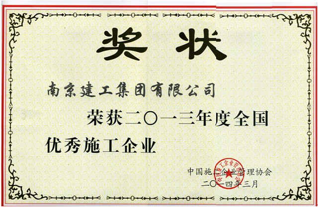 ? 南京建工集團榮獲2013年度“全國優(yōu)秀施工企業(yè)”稱號
