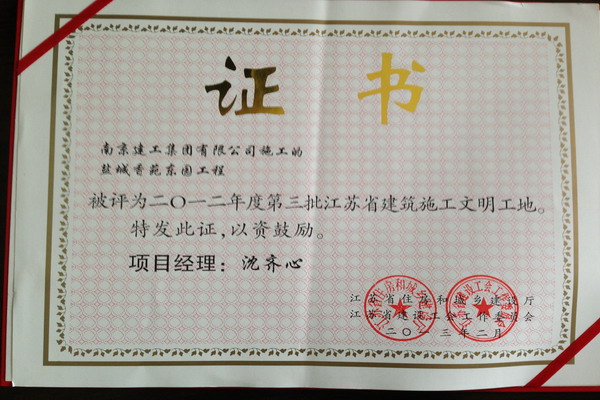 南京建工集團(tuán)六公司鹽城香苑東園項(xiàng)目喜獲“省級(jí)文明工地” 日前,由南京建工集團(tuán)第六工程公司承建的鹽城香苑東園項(xiàng)目喜獲“2012年度第三批江蘇省建筑施工文明工地”。 香苑東園工程位于鹽城市城南新區(qū)人民南路,總建筑面積約475000平方米。該工程建筑面積大、棟號(hào)多,管理難度較高。自開工伊始,項(xiàng)目部嚴(yán)格參照創(chuàng)建“文明工地”相關(guān)標(biāo)準(zhǔn),精心組織,扎實(shí)工作,制訂了創(chuàng)建“省級(jí)文明工地”管理規(guī)定,為爭(zhēng)創(chuàng)省級(jí)文明工地打下了堅(jiān)實(shí)的基礎(chǔ)。