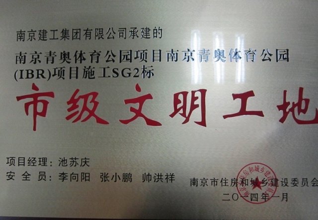 近日,從南京市市政質(zhì)量安全監(jiān)督站獲悉,由南京建工集團(tuán)有限公司承建的青奧體育公園跨河橋工程喜獲“2013年度南京市市政基礎(chǔ)設(shè)施工程市級(jí)文明工地”。