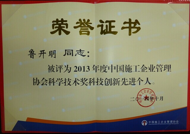 ? 南京建工集團(tuán)總工程師魯開明榮獲2013年度中施協(xié)科技創(chuàng)新先進(jìn)個人