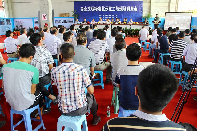集團(tuán)召開安全標(biāo)準(zhǔn)化施工現(xiàn)場(chǎng)觀摩會(huì)活動(dòng)前,與會(huì)人員參觀了項(xiàng)目施工現(xiàn)場(chǎng),對(duì)臨時(shí)設(shè)施、安全防護(hù)、物料堆放、文明施工等細(xì)節(jié)進(jìn)行觀摩。集團(tuán)領(lǐng)導(dǎo)重申了舉辦現(xiàn)場(chǎng)觀摩交流會(huì)的目的和意義。市、區(qū)兩級(jí)行政主管部門領(lǐng)導(dǎo)對(duì)集團(tuán)的安全標(biāo)準(zhǔn)化建設(shè)工作給予了充分肯定,同時(shí)也提出了一些建議和要求。