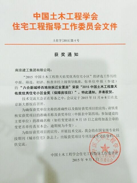 日前,經(jīng)中國(guó)土木工程學(xué)會(huì)住宅工程指導(dǎo)工作委員會(huì)評(píng)定,由南京建工集團(tuán)承建的“六合新城橋西苑地塊拆遷安置房”榮獲“2015中國(guó)土木工程詹天佑獎(jiǎng)優(yōu)秀住宅小區(qū)金獎(jiǎng)(保障房)”。 六合新城橋西苑地塊拆遷安置房項(xiàng)目位于六合區(qū)雄州街道王橋路,總建筑面積約35.