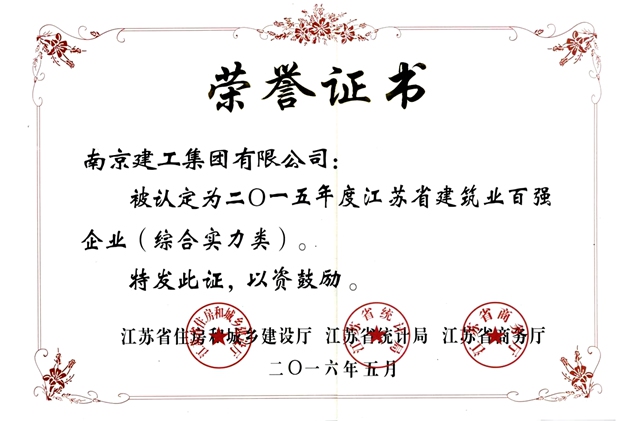集團榮獲2015年度江蘇省建筑業(yè)百強企業(yè)
