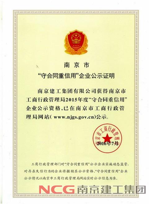 日前,南京建工集團(tuán)有限公司順利通過2015年度南京市“守合同重信用”企業(yè)復(fù)評,再次被南京市工商局認(rèn)定為“守合同重信用”企業(yè)。