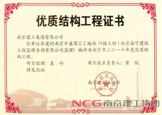 近日,由紫金科創(chuàng)總承包公司承建的豐盛商匯C地塊項(xiàng)目5#、6#、7#及8-1#、8-2#樓喜獲2016年南京市“優(yōu)質(zhì)結(jié)構(gòu)工程