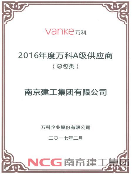 集團(tuán)被評(píng)為“2016年度萬(wàn)科A級(jí)供應(yīng)商”