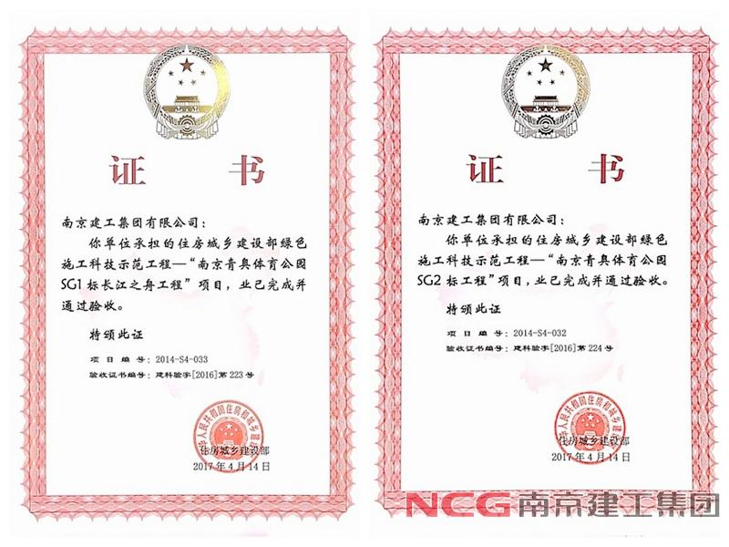 集團(tuán)兩項(xiàng)工程獲住建部綠色施工科技示范工程驗(yàn)收證書(shū)