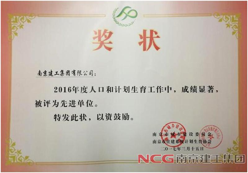 集團被評為2016年度人口與計劃生育工作先進單位