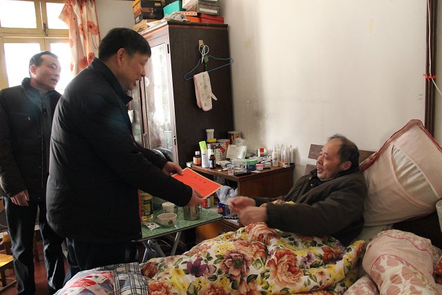 1月23日,市住建紀(jì)工委梅國(guó)強(qiáng)書(shū)記、組織人事處陳劍萍副處長(zhǎng)在建工集團(tuán)黨委副書(shū)記徐燈英、工會(huì)主席郭躍志的陪同下,對(duì)集團(tuán)困難黨員、老黨員、老職工代表進(jìn)行慰問(wèn)。集團(tuán)退休職工袁端新身患腎臟疾病,每月僅有的退休工資都用于治療和買藥,家庭生活困難。在袁端新家中,梅書(shū)記關(guān)切地詢問(wèn)了他的生活和健康狀況,囑咐他安心養(yǎng)病,并為其送上慰問(wèn)金。集團(tuán)黨委、工會(huì)也送上了慰問(wèn)金和精心準(zhǔn)備的年貨,使袁端新一家深受感動(dòng)。